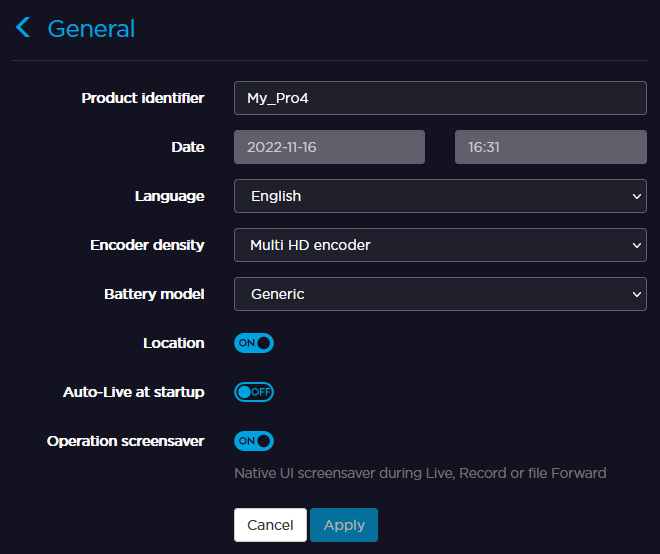 This option allows you to start a Live automatically once the unit is connected to a StreamHub or a Manager and once there is a video source.