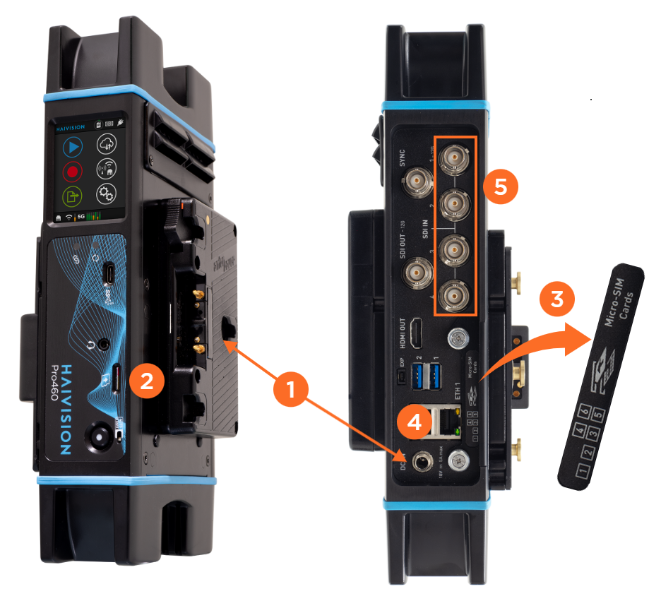 Install the external battery onto the unit side or connect the AC/DC adapter and the power cable.