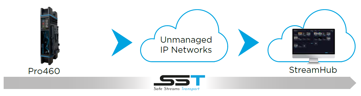 The Pro460 embeds 6 world-wide compliant 3G/4G/5G cellular modems with high efficiency custom patented antennas. The transmission can also operate on other networks such as WiFi, Ka or Ku band satellite, IP leased line or even over the Internet. It is made possible thanks to our Emmy® awarded SST Technology (Safe Stream Transport). This technology offers advanced techniques for network aggregation, Adaptive packet Retransmission (ARQ) and Forward Error Correction (FEC) to reach the upper network throughput and maximize the Quality of Service. It ensures the delivery of video even in the midst of unpredictable and unmanaged network conditions by: