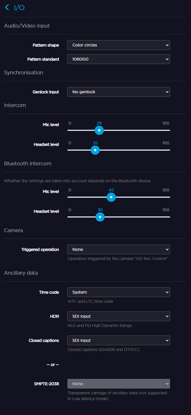 If the SMPTE-2038 field is set to SDI, the Time Code and HDR fields are no longer configurable.