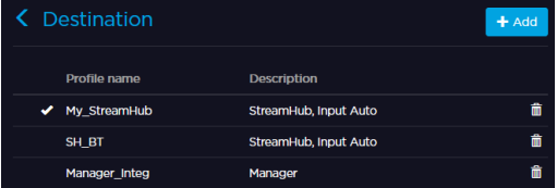 To delete a destination Profile from the Unit Panel, or from the Web Interface, see the sections below.
