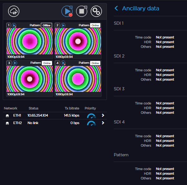 If Ancillary Data is enabled, the icon appears on the top bar of the Web Interface and the Unit Panel.