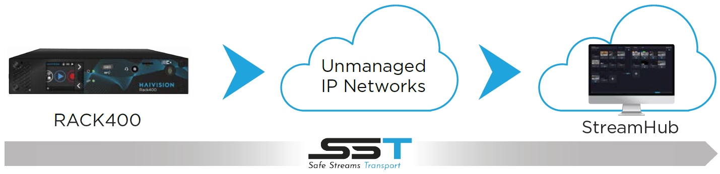 The RACK400 can help your Remote Production or At-Home Production reach its full potential. It provides robust and error-free transmission over any network such as cellular, satellite, IP leased line or over the Internet. It is made possible thanks to our Emmy® awarded SST Technology (Safe Stream Transport). This technology offers advanced techniques of network aggregation, Adaptive Packet Retransmission (ARQ) and Forward Error Correction (FEC) to reach the upper network throughout and maximizes the Quality of Service. It ensures the delivery of video even in the midst of unpredictable and unmanaged network conditions by: