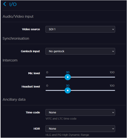 - You can also select amongst the following standards: 720p50, 720p59.84, 720p60, 1080p25, 1080p29.97, 1080i59.94, 1080i60, 1080p50, 1080p59.94, 1080p60 UHDp25, UHDp29.97, UHDp30, UHDp50, UHDp59.94, and UHDp60.