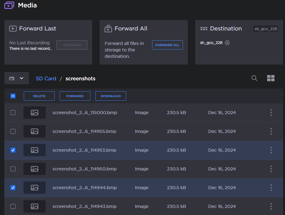 1. In the sidebar, click Media. The SD card files appear: