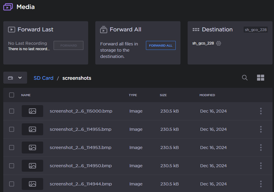 1. In the sidebar, click Media. The SD card files appear: