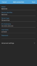 In the IP /Hostname field, enter the IP address given on the Registration Card delivered with your BeOnAir package.