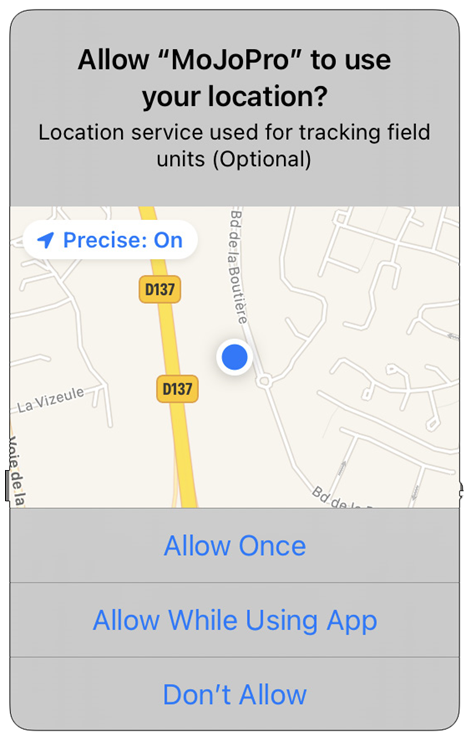 Decide which way you will allow MoJoPro to access to your photos and your phone location