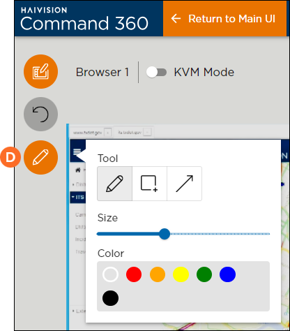 Click Return to Main UI to see the annotated asset as part of the full display. The drawings remain on the asset whether in the zoomed or normal views, but are not saved in the layout.