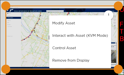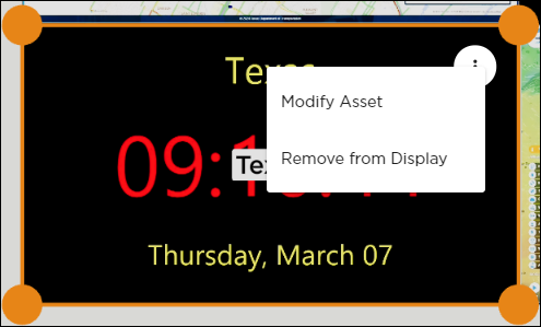 Within the Activity Interface, asset management takes place through the pop-up menu available on each asset placed on the display. The type of asset selected determines the options available.