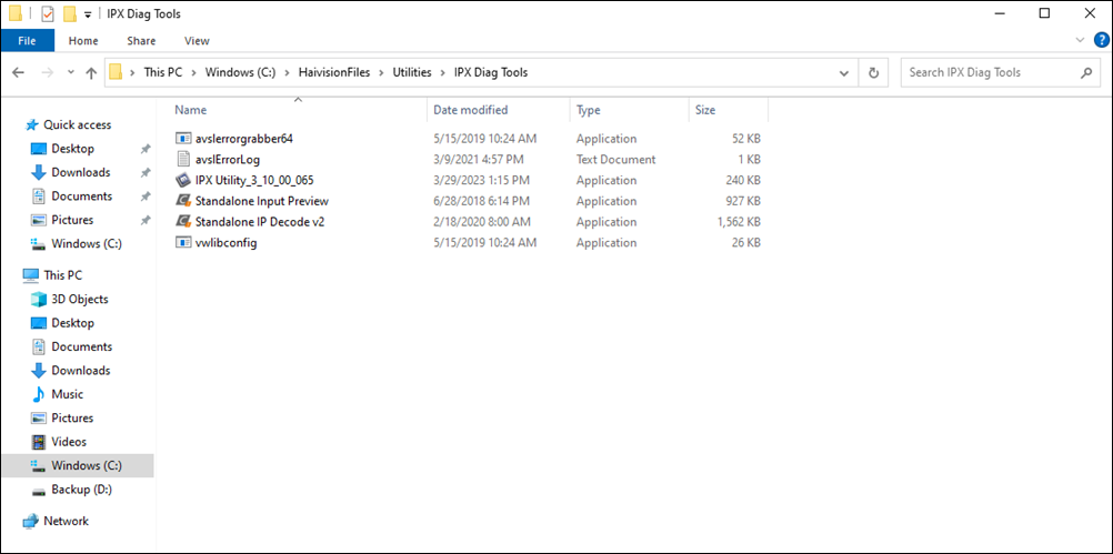 Open File Explorer and go to C:\HaivisionFiles\Utilities\IPX Diag Tools.