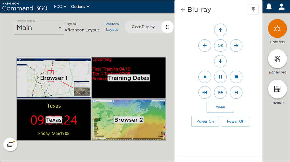 Click on a listed resource to view control options. Cable tuners, Blu-ray Players, Apple TV, or other similar resources can be controlled through this interface.