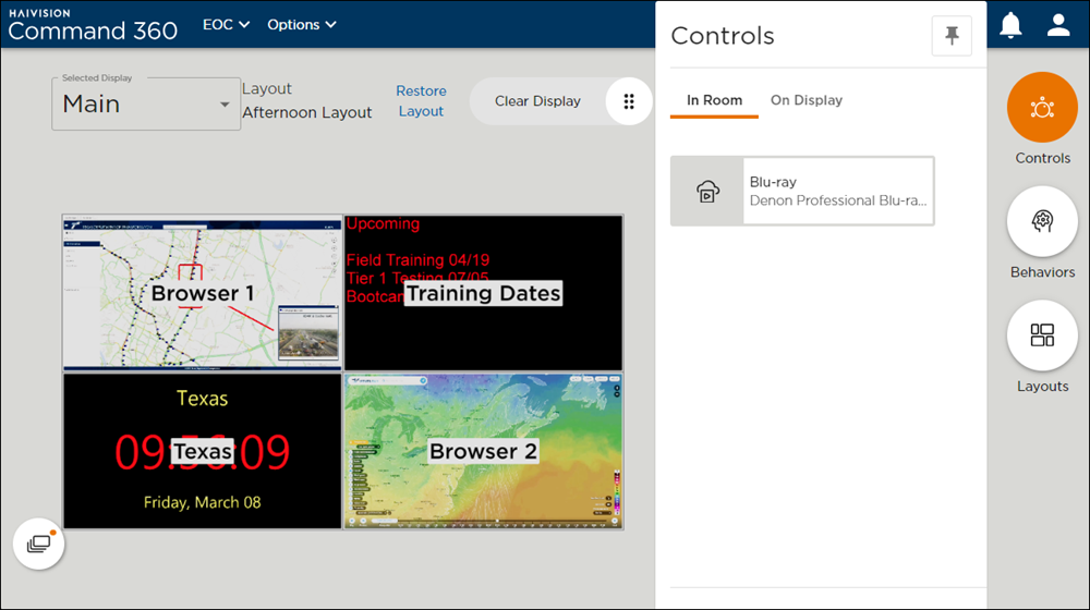 Within the Activity Interface, click the Controls button then click the In Room tab to view resources available in the room.