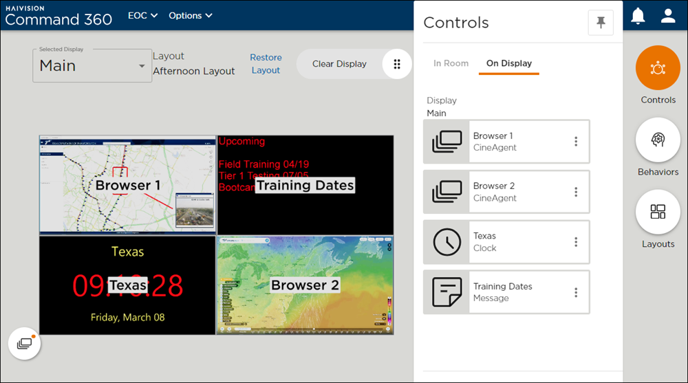 When viewing the full Activity Interface, click the Controls button then the On Display tab to reveal all resources actively in use on the display.