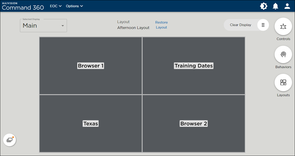 The only viewing mode available to LAD accounts, Compact View allows you to control assets, launch behaviors, and apply layouts but does not include the display interface.