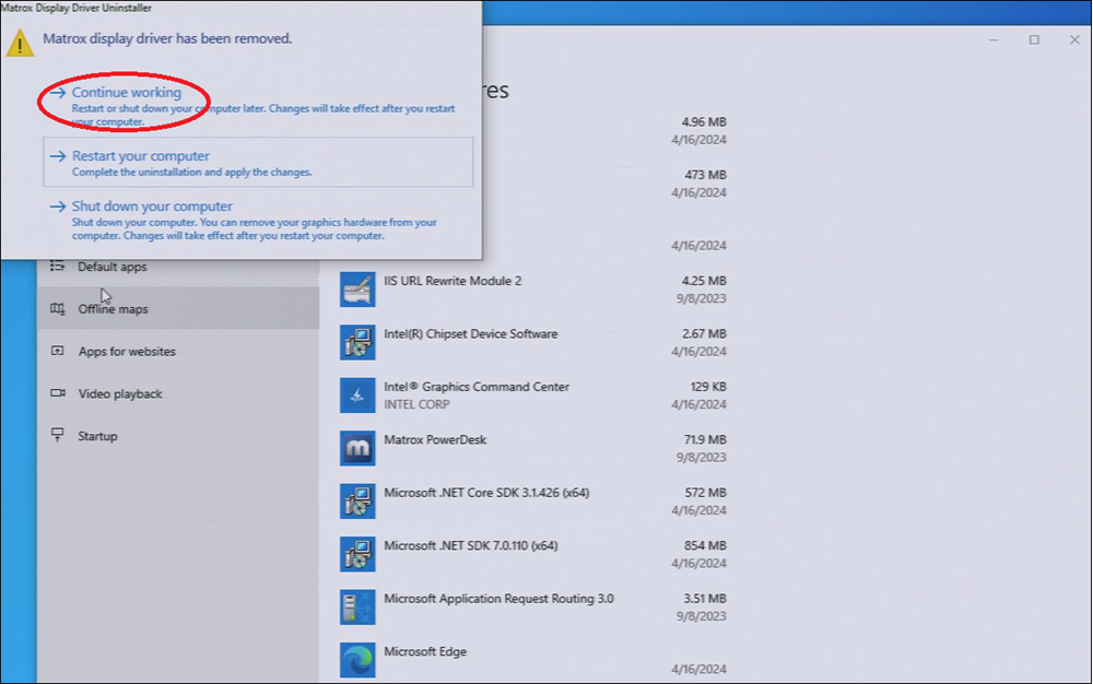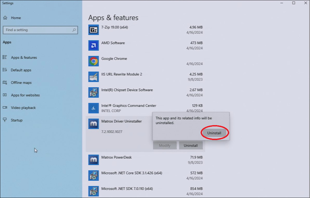 - Still in Apps & Features, locate Matrox Driver Uninstaller.