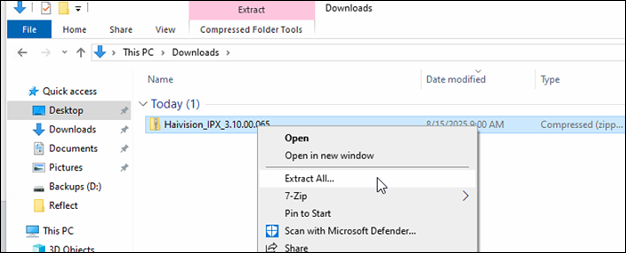 Locate the driver package in File Explorer.