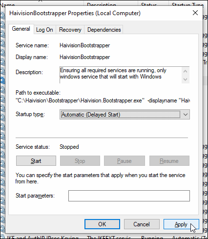 After installing the new driver and rebooting, set HaivisionBootstrapper to automatic (delayed) start and reboot once more.
