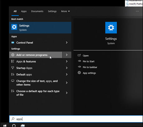 Open the Start menu and search 'apps.'