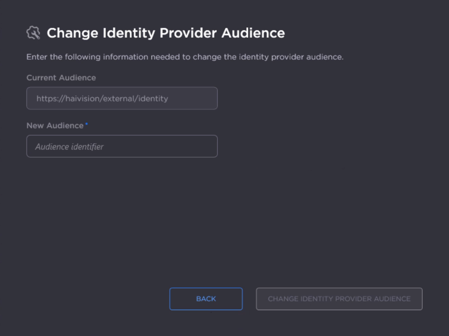 Click Change Identity Provider Audience.