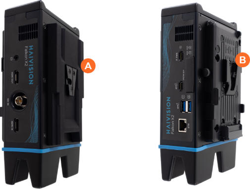Both plates are either V-Mount or Gold Mount. A mixed configuration is not available.