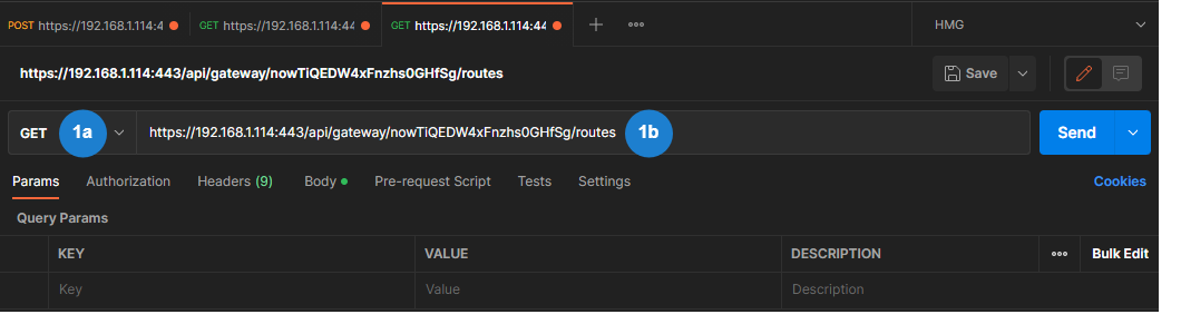 Enter the Request URL for the Get List of Routes API command, using the following format, where Device ID is the copied value from Step #3 in the "Get Device Information" procedure: