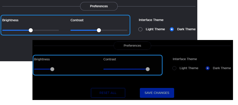 Customize the brightness and contrast of the web interface.
