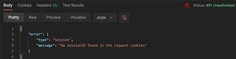If you receive a HTTP 401 Unauthorized or a 404 Not Found response, your session cookie may have expired. Issue the Initiate Session API command again to receive a new session cookie.