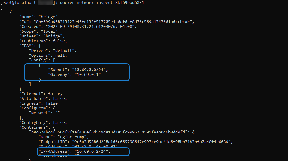 docker network lsUse the following command to inspect this network's settings using the ID value found in step #2: