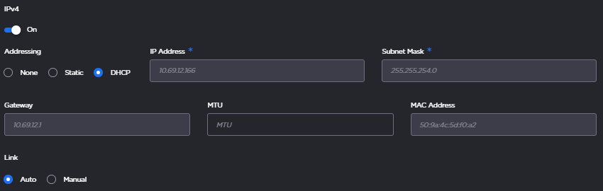 Under Interfaces, select whether the interface uses IPv4 and/or IPv6 protocols by toggling the On/Off switch next to each.
