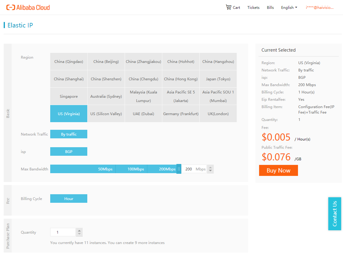 In Max Bandwidth, the value of 200 Mbps is the peak value, not the dedicated fixed bandwidth. This means you can enjoy up to 200-Mbps internet bandwidth, but paying for the actual traffic only.