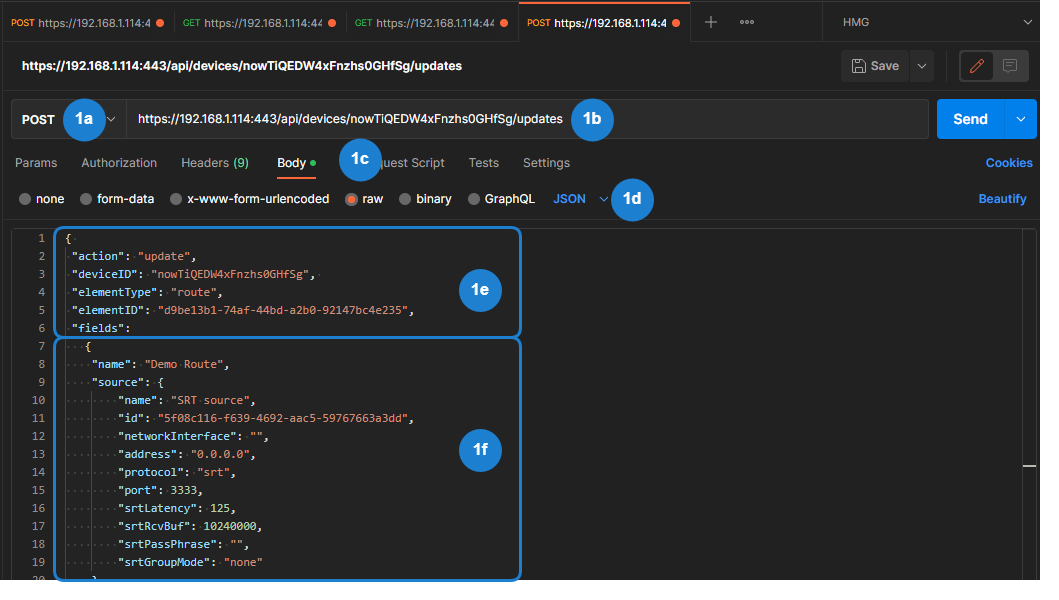 Enter the Request URL for the Get List of Routes API command, using the following format, where Device ID is the copied value from Step #3 in the "Get Device Information" procedure: