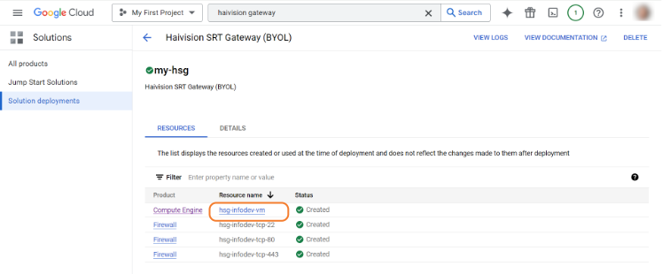After deployment completes, click the Compute Engine's Resource name to access the details.