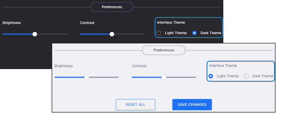 Customize the brightness and contrast of the web interface.