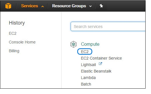- After you have successfully logged in to the AWS portal, click Services > EC2.