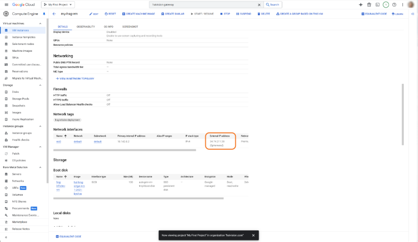 On the VM details page, scroll down to the Network Interfaces section and copy the External IP address.