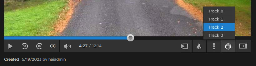 If your system has been configured to support multi-audio streams, you will see the language track selector (as shown in the following example).