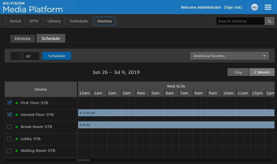 On the Devices screen, click the Schedule tab.