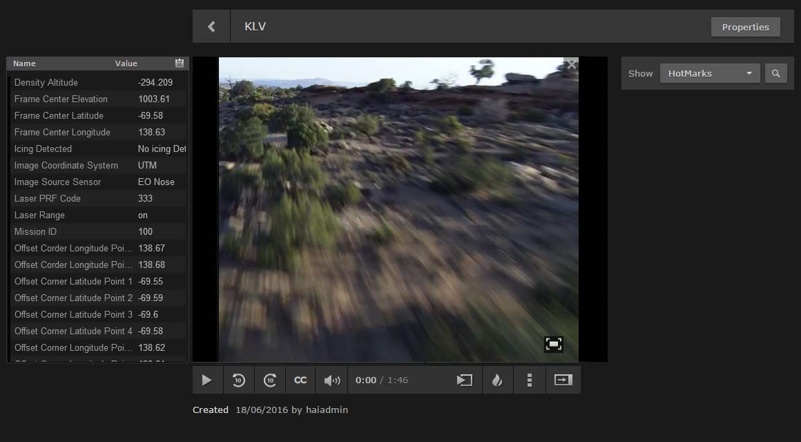 HMP supports KLV data parsing and display as a licensable option per system. On a licensed system, you can turn on/off the display of KLV data in the player. The steps are the same for the Source, Session, or Video player.