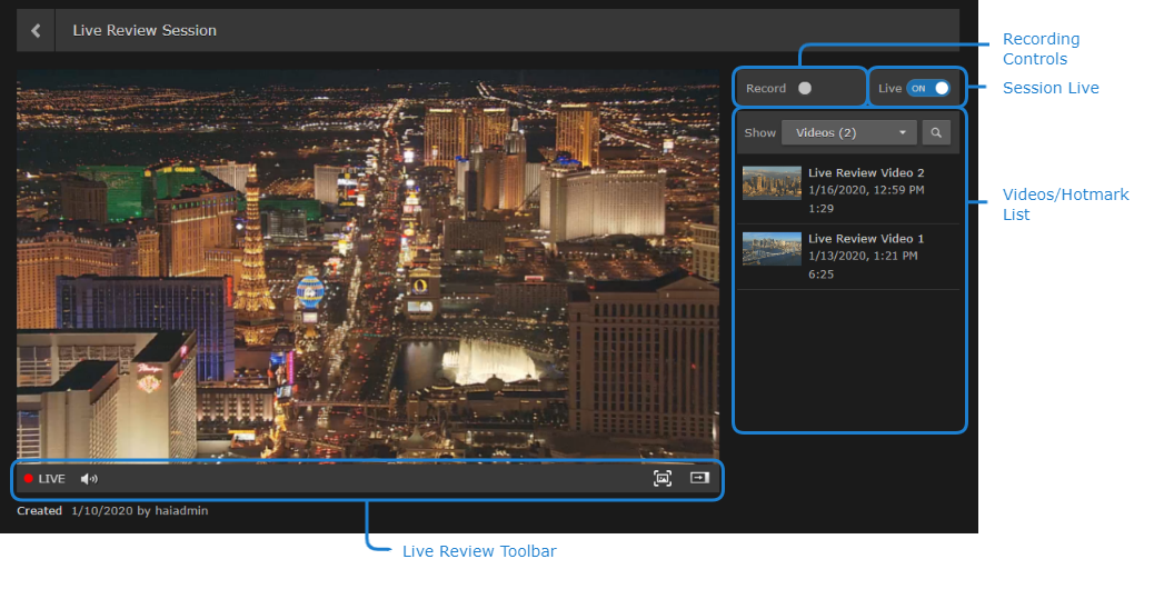 Your session opens in the Live Review player. A sample screenshot is shown below. Each labeled section is discussed further in subsequent sections.