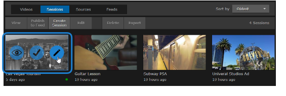 After creating a session, you can edit the settings by opening its Session Information pane from either the Session Player or the Library's Sessions list. You can edit the session name and description, schedule the session, and assign metadata to the session.