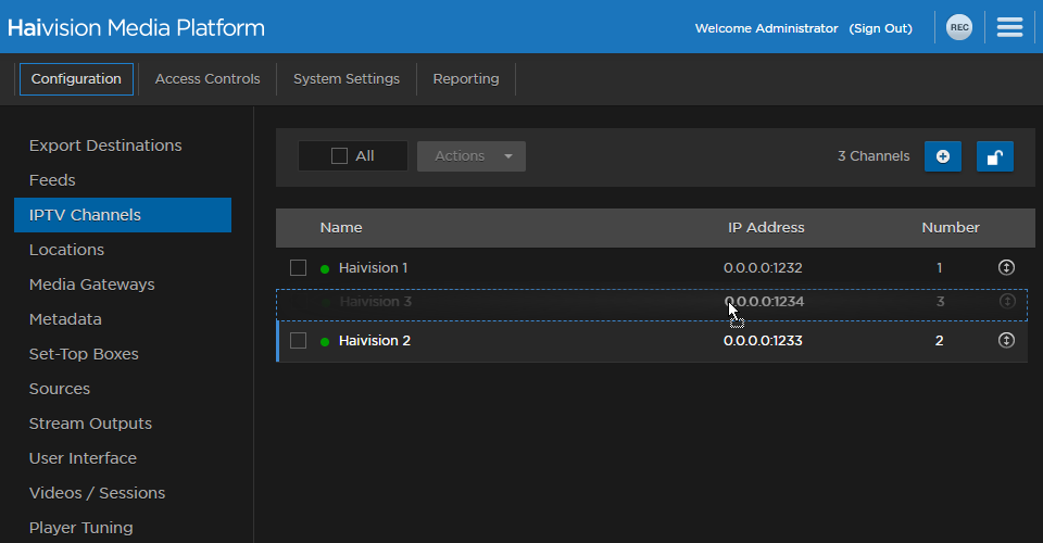 button to enable the drag-and-drop function.Drag a channel you wish to change the channel number of to the new channel number location. In the below screenshot, channel #3 is dragged above channel #2.