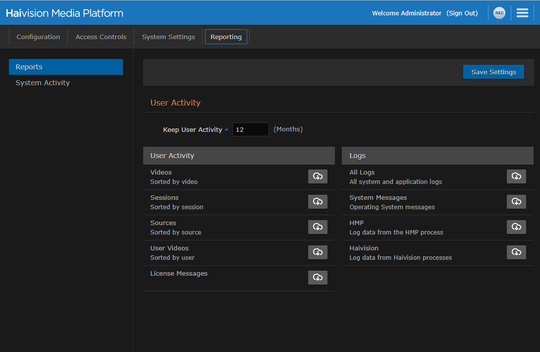 3. To change how long to keep the user activity data, enter the number of months in the Keep User Activity field and click Save Settings.