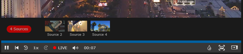 If the session contains multiple sources, the recording status also appears on the source strip, indicating that all four sources are recording: