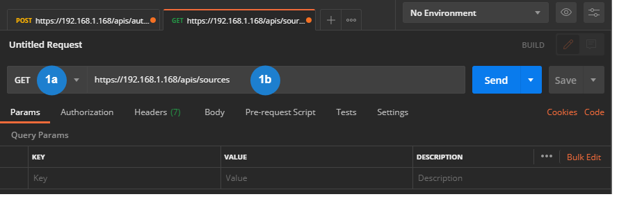 Enter the Request URL for the Get the Source List API command, using the following format: