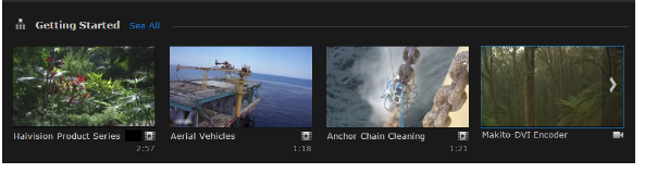 Video feeds are used to display frequently updated content. For each feed on the Portal, items are displayed in a scrolling strip. Clicking the arrow to the right or left of the strip scrolls through the remaining thumbnails.
