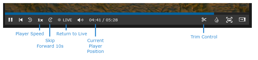 Click the button to move the player position back 10 seconds. The toolbar changes to show the other features as shown in the Recording - Not Live tab.