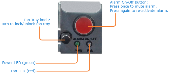 Verify that the Power LED is green. If the LED is not green, the fan tray is faulty. If this problem occurs, contact your customer service representative for a replacement part.