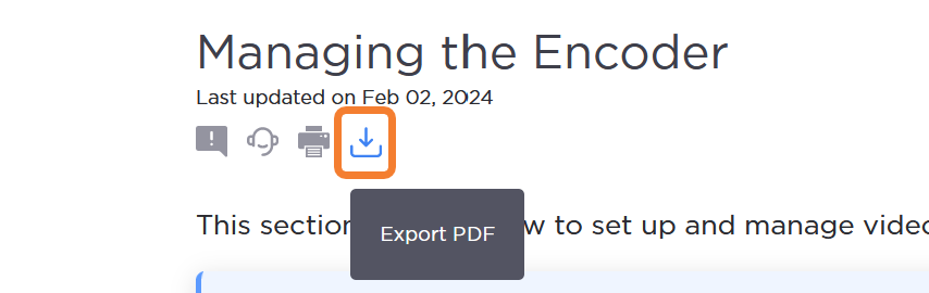 1. Browse to the parent page of the content you wish to PDF.