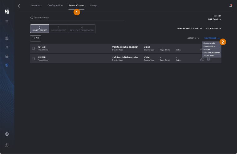 and select the preset you wish to create.Select Real Time Transcoder from the New Preset drop-down menu.